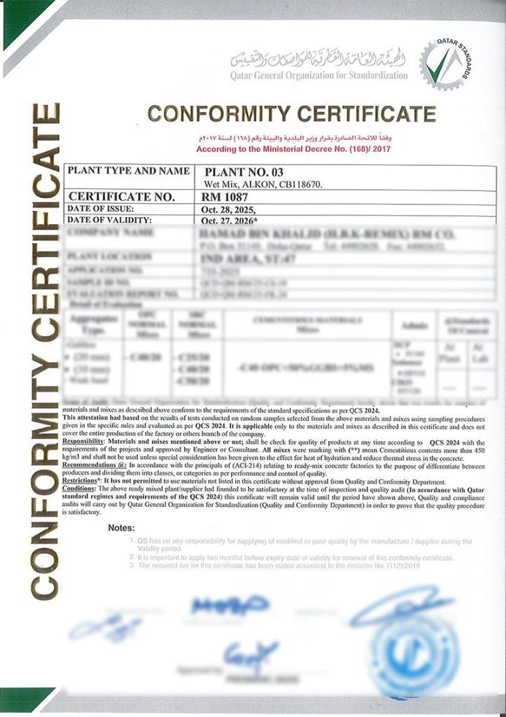 QGOS Conformity Certificate – Industrial Area Plant No 3